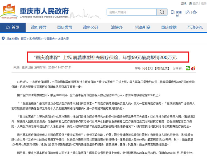 全城刷屏的“重慶渝惠保”到底好在哪?快來(lái)看看重慶市民們熱情的留言吧!