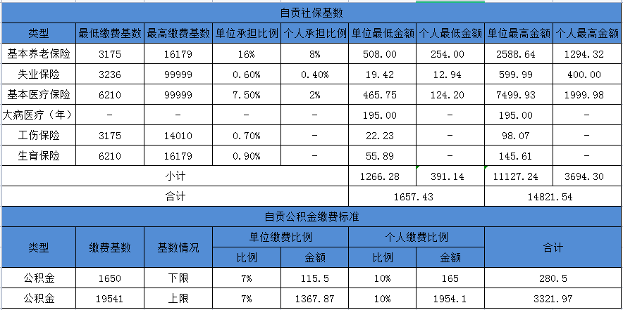 以下是巴中市2021年社保、公積金繳費(fèi)基數(shù)表